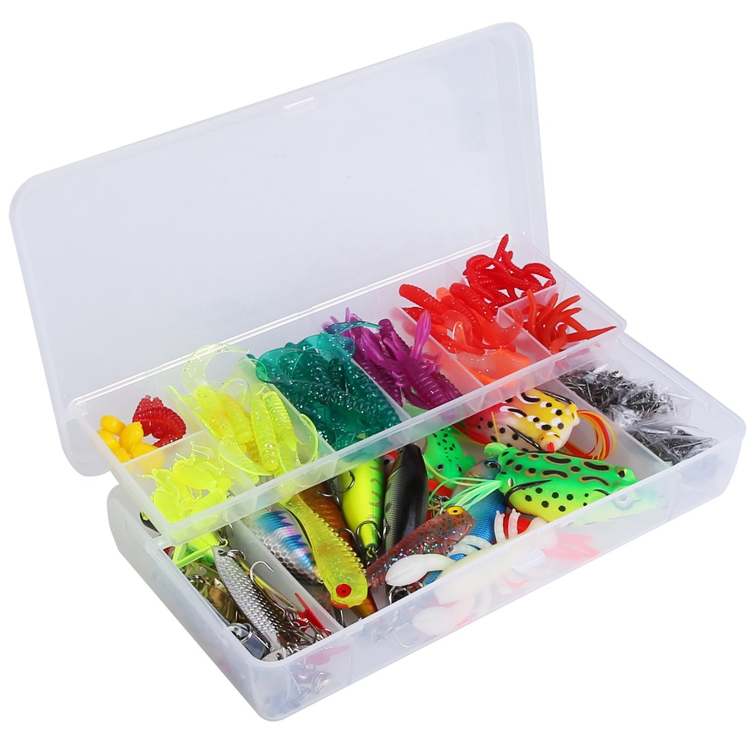 *Portable Tackle Box*:All the saltwater and freshwater fishing lures can be stored and well organized in the tackle box. The loaded tackle box features 2 layers,one for soft lures,and the other for hard ones. Bring much convenience for transport and storage.