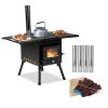 Highly flame retardant upgrade:Camping wood stove including 4 chimney pipes with a diameter and 1 fire blanket. Help you adjust the height to suit various places. Carbon steel with high-temperature heat-resistant black finish.Only for outdoor use with proper ventilation.It is suitable for heating and cooking with friends and family in winter.