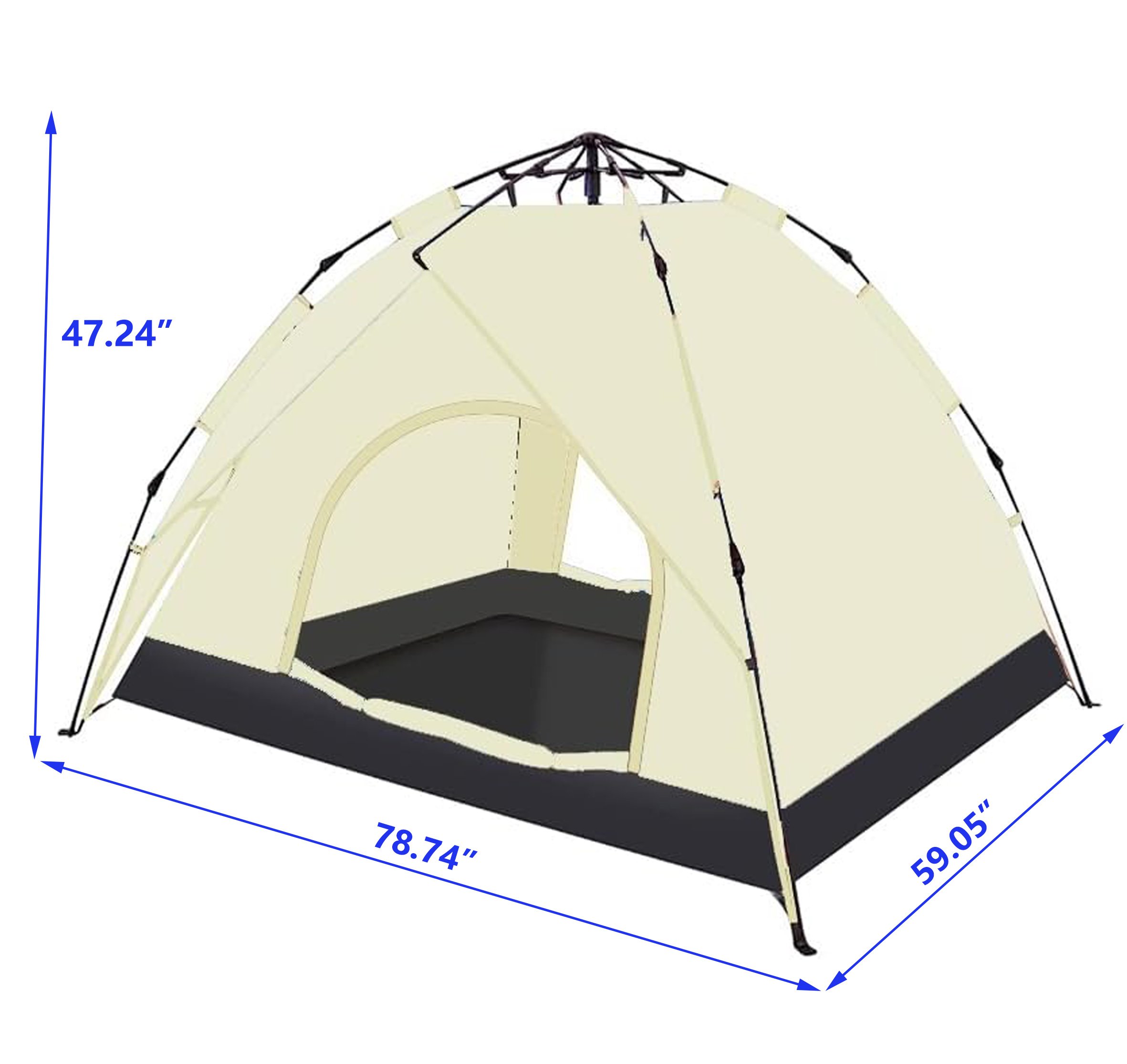 Easy assembly: It can be easily installed in a few minutes. This dome camping tent is equipped with a portable backpack, which can be taken anywhere. Color Beige Single-layer tent structure Build-free quick opening Applicable in spring, summer and autumn Support rod material glass fiber rod Interior material 210D Oxford silver-coated cloth External tent material 210D Oxford silver-coated cloth Material of curtain bottom: 210D oxford cloth (black) External waterproof index 800mm (included) - 1000