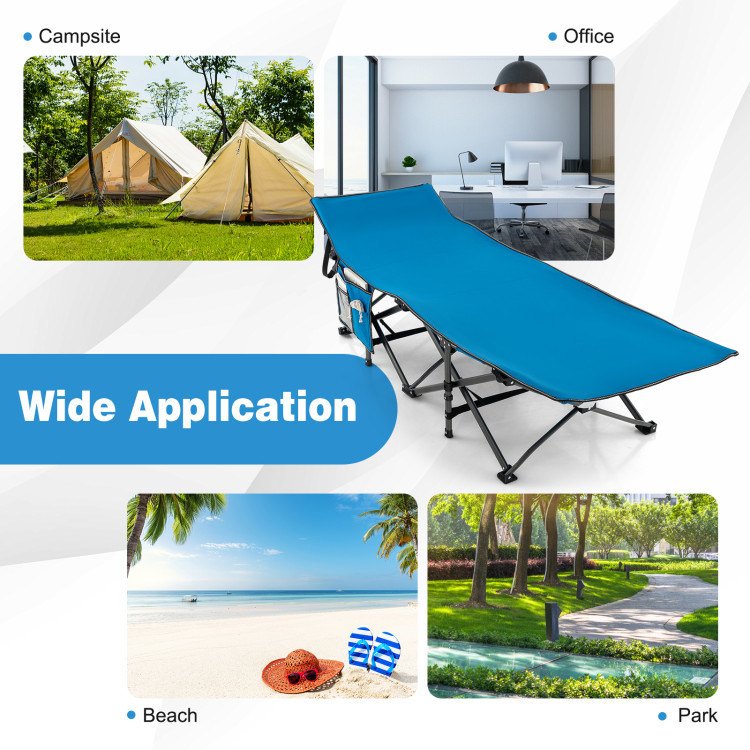 ● Easy Folding and Carrying: The lightweight and portable sleeping bed can be folded and unfolded in seconds with no tools required, and designed with a carrying bag for convenient storage and transportation. Besides, there exists a spacious side storage pocket to store your water bottles, phones, keys, sunglasses, books, and more.